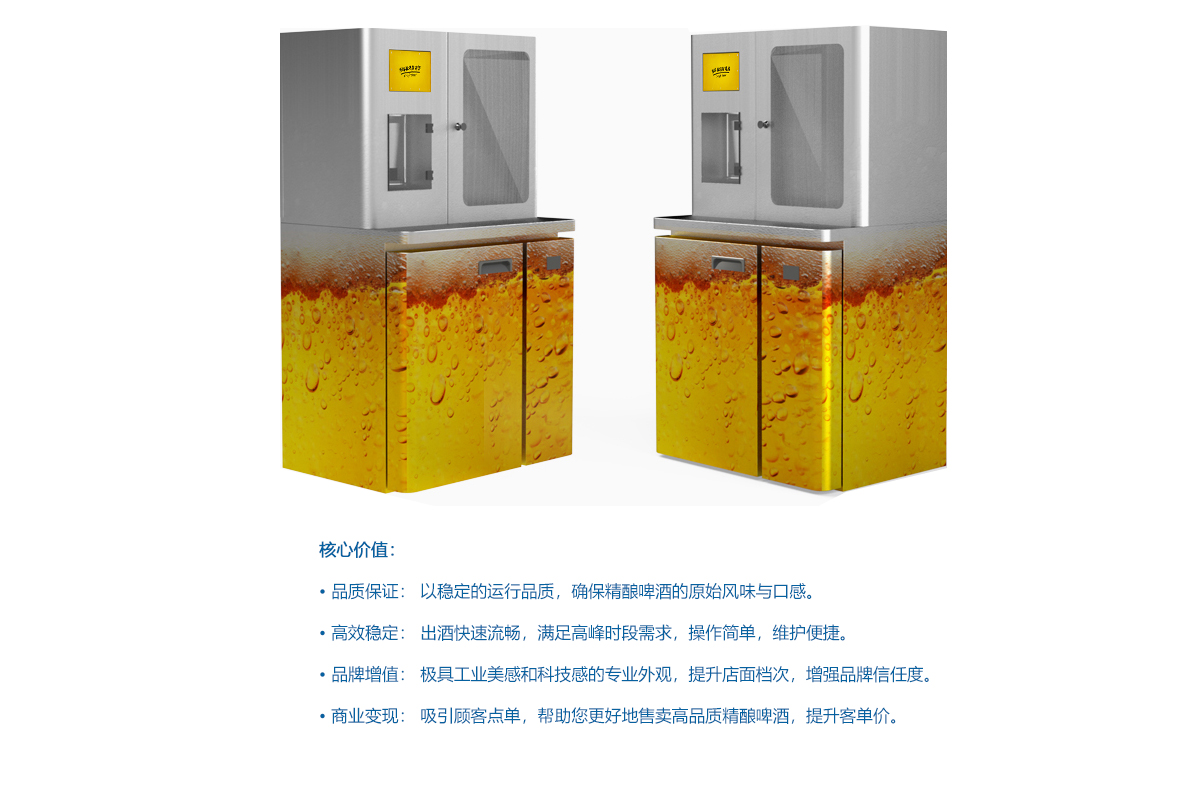 洞察客户痛点,把握在售产品的市场问题,我们基于市场问题进行设计改良的这款商用啤酒机,解决了产品安定性的问题,让顾客的营运更省心。其出色的稳定性和炫酷的视觉设计,更能提升消费体验,成为顾客店内的吸睛焦点,助力推动销量增长